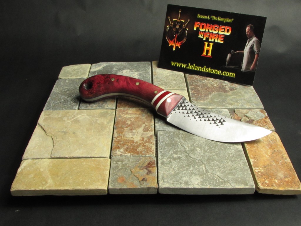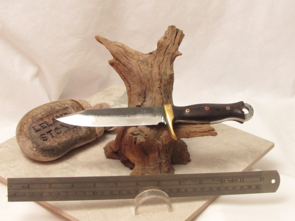 Hunter’s Knife; farrier’s rasp blade with stabilized alder burl scales.